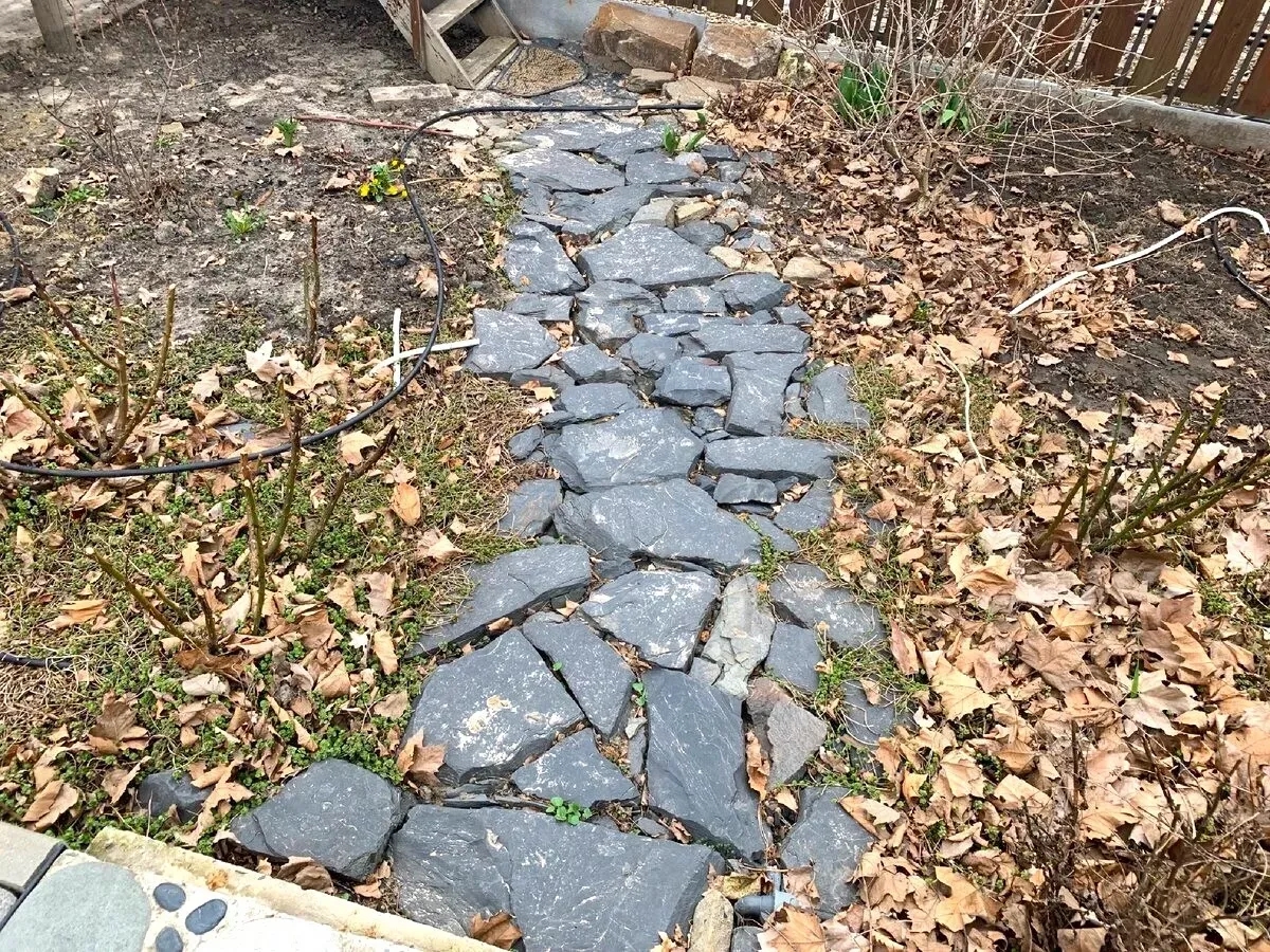 Тем не менее, существует альтернативное решение, предложенное автором дзен-канала «Строю для себя». Он поделился интересным способом создания садовой дорожки, который был заимствован у финнов. Для его реализации понадобятся геотекстиль (достаточно самого простого), щебень, песок, кусочки шифера и природный камень или плитка.