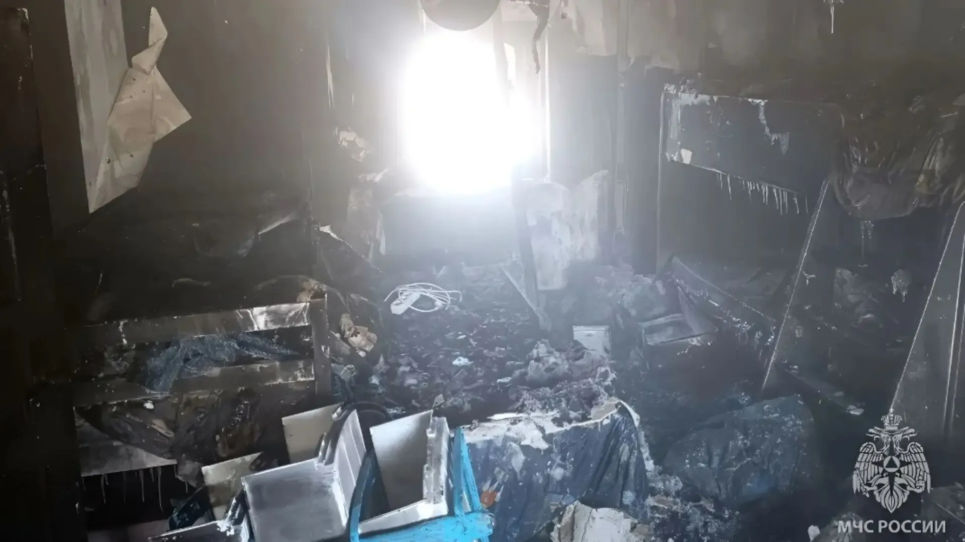 Огонь быстро распространился внутри помещения, однако прибывшим пожарным удалось оперативно локализовать возгорание и не допустить перехода пламени на соседей. Сгорело около 80 квадратных метров.