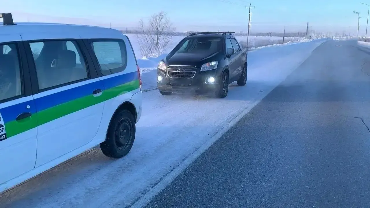 На Восточной объездной дороге Сургута, в районе шестого километра, дорожники предотвратили возможную трагедию в условиях экстремального мороза. Температура воздуха в тот момент опускалась до −40 градусов.