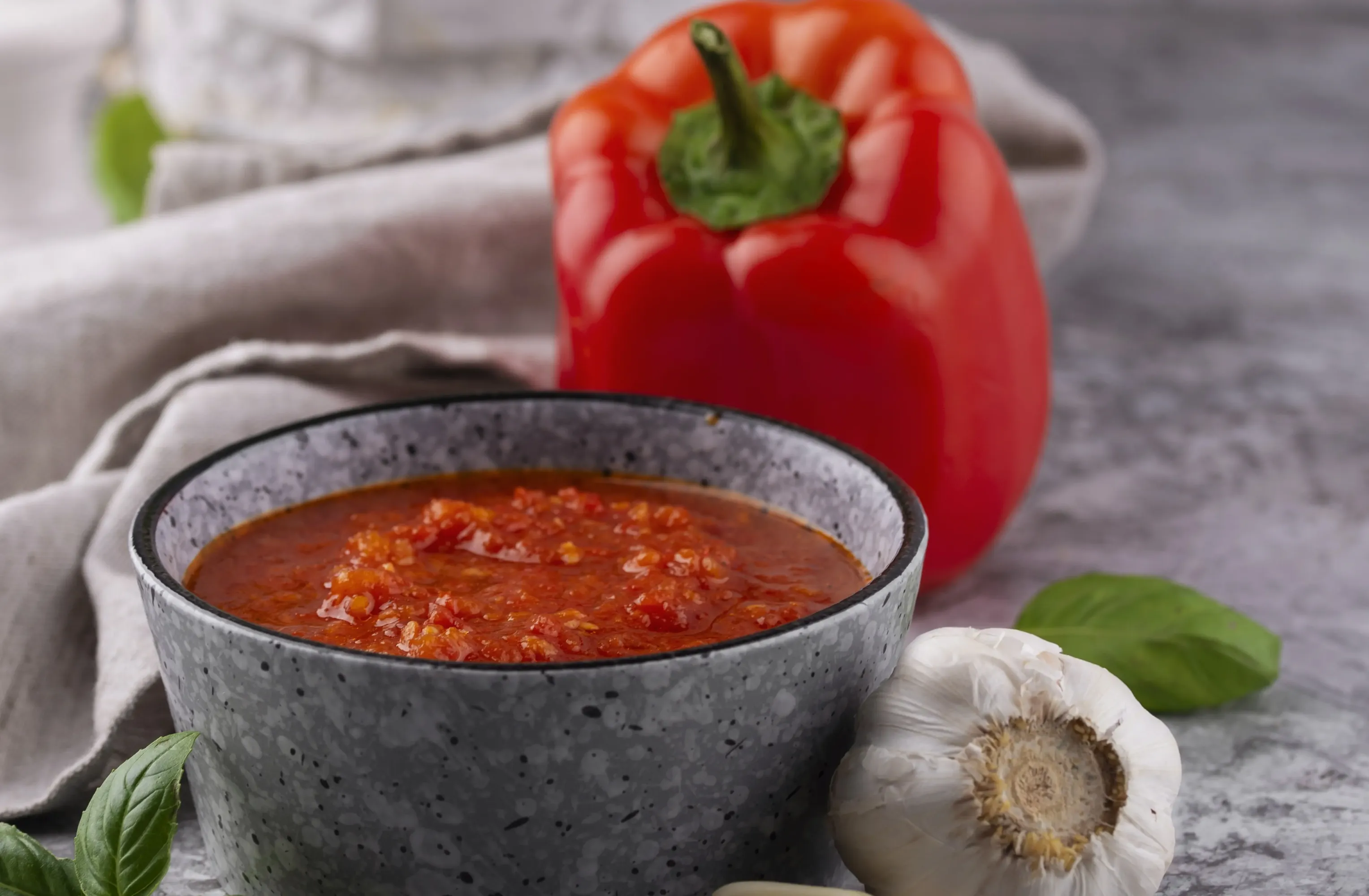 Очистить и нарезать перцы кубиками. Всыпать в томатный соус. Варить еще 10 минут. За 2−3 минуты до окончания варки добавить чеснок, пропущенный через пресс, и влить уксус.
