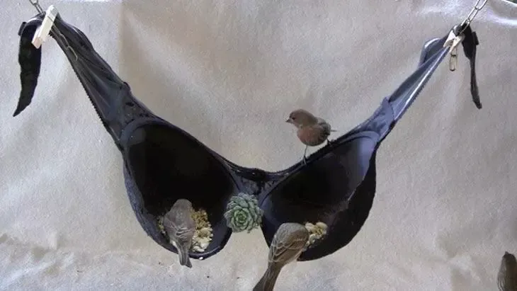 Знаменитая садоводка Дебра Болдуин предложила оригинальный способ, как превратить бюстгальтер в кормушку для птиц. Вам не нужно ничего строить: просто прикрепите бюстгальтер с помощью прищепок к веткам деревьев или забору. Наполните чашечки кормом для птиц, и у вас получится удобная птичья столовая!