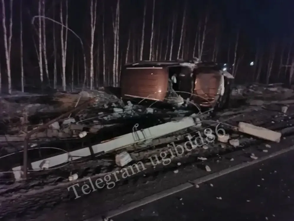 В Нефтеюганске иномарка врезалась в опору ЛЭП и перевернулась